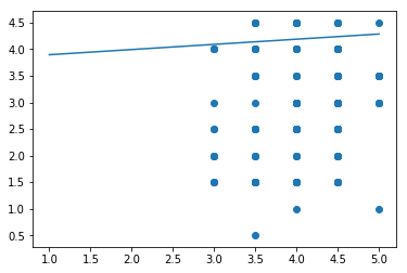 #Fit into a line, y = mx+b where x is 3.