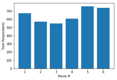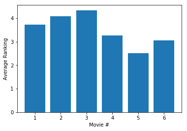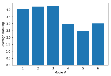 So columns with lower ranking values are considered better by the survey respondants. From the chart, it looks like the older movies(#4-6) have higher rankngs than the newer star war movies(#1-3).