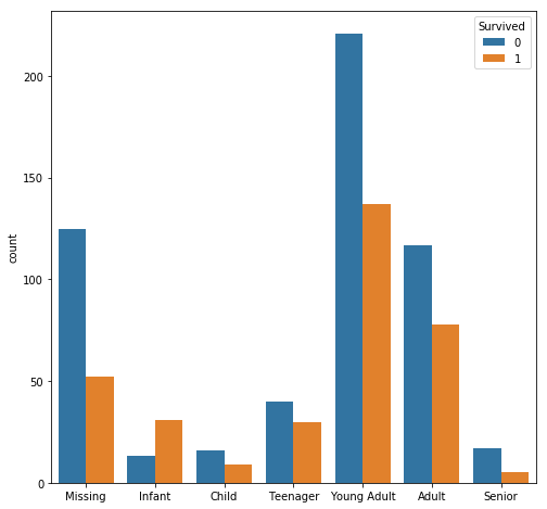 First, let’s take a look at this column relative to the ‘Survived’ column